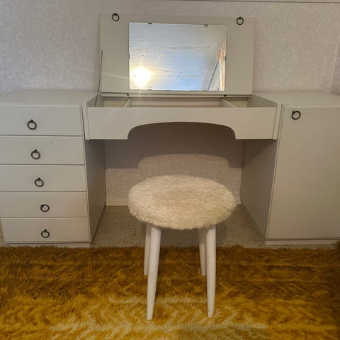 Vintage sminkbord i teak med stol