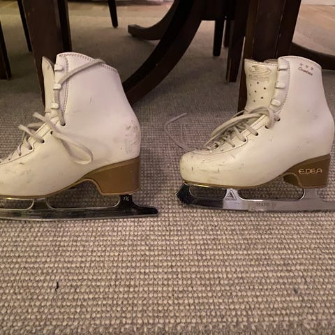 Edea konståkningsskridskor i storlek 210, motsvarar 31,5 enligt hemsida. Passar för barn som tränar konståkning