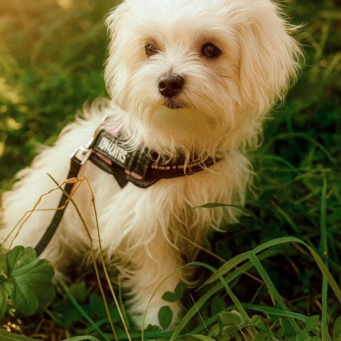 Han klarar att vara hemma själv inga problem med ca 4-5 tim. Han är renrasig Malteser han är lite försiktig för nya människor i början men ger man han lite tid så då kommer det att gå bra.