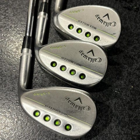 Callaway Jaws 50° MD5 Wedge, sparsamt använd med fina grooves fortfarande. Midsize Lamkin grepp sitter på i fint skick. True Temper Dynamic Gold 115 skaft