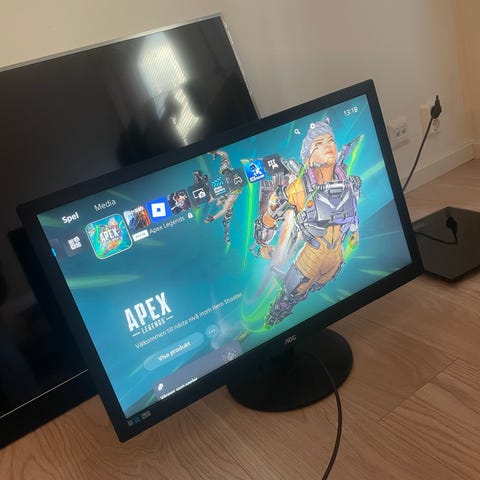 Den lilla är en Samsung 60hz skärm 25tum