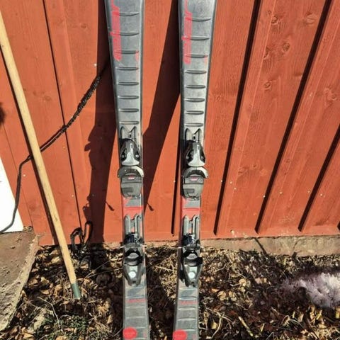 Paket med. Nordica skidpjäxor i storlek 285. Rossignol skidor120 cm samt stavar