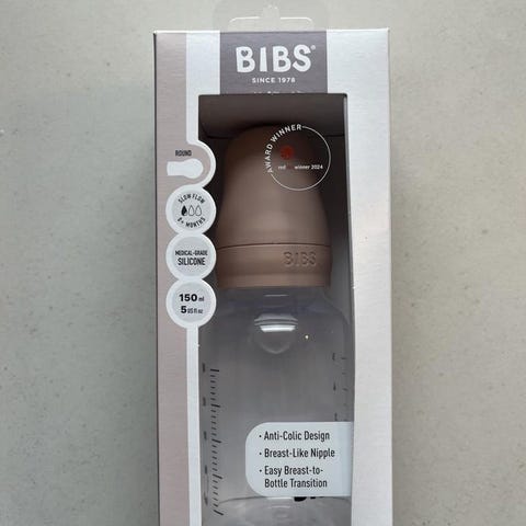 BIBS Baby Bottle är en prisbelönt nappflaska som är slitstark, har funktionella tillbehör och en stilren design. Sugdelen är specialdesignade för att efterlikna mammans bröstvårta för att främja en liknande tungplacering och sugteknik som upplevs vid amning. Flaskan är lätt, enkel att greppa, tål diskmaskin och har en sugdel med en kolik-motverkande ventil. BPA-fri.