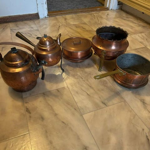 Ett stort set av kastruller och stekpannor m.m.