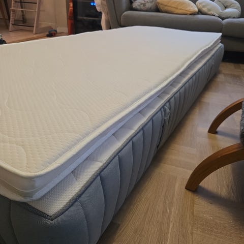 Inköpt juni 2025 , 180x200, tvättbar klädsel, hundhår finns.