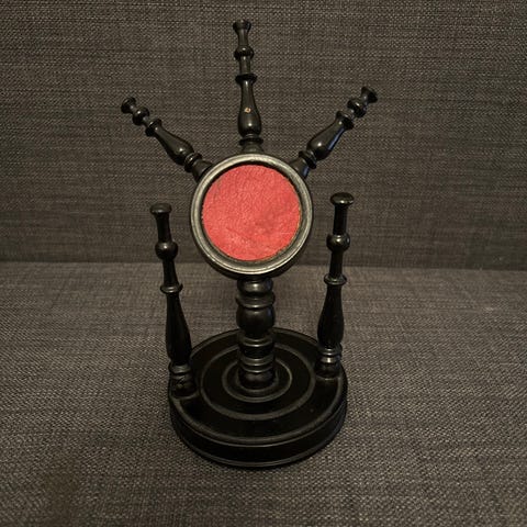 Aarikka Dekoration Ornaments i porslin. Setet innehåller två dekorativa föremål med ringformade mönster. Dessa är golvvaser i beige färg. Den längre är 90 cm och den kortare är 60 cm