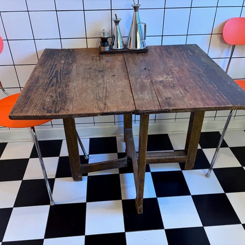 Klaffbord/slagbord/fällbord allmoge 1800-tal i massiv furu med låda i sargen i fint bruksskick se bilder.