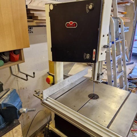 Bandsåg Jet JWBS-16X i mycket bra skick säljes tillsammans med fyra extra sågblad. Mjukstart och motorbroms. Mycket sparsamt använd. Monterad på ställning med hjul. Stor och tung. 8000 sek eller högstbjudande.