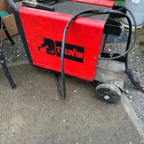 Cebora Poker svetsmaskin med reglerbar strömstyrka. Maskinen är i rött utförande och används för svetsning. Utrustad med kontrollpanel för inställning av svetsparametrar.