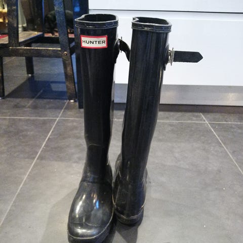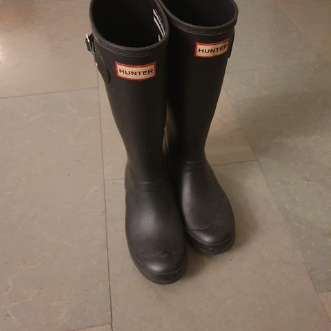 Hunter Gummistövlar i storlek 37, svart färg. Tillverkade i gummi, avsedda för att användas som vattentäta stövlar.