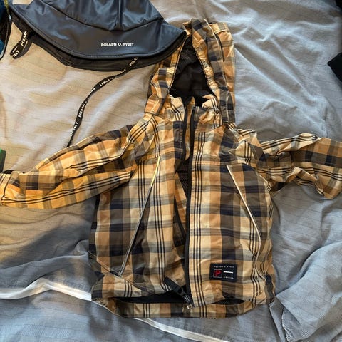 Bomullsjacka för pojke i storlek 86. Jackan är blå med grå ärmar och är tillverkad av bomull med en blandning av polyester (70% bomull, 30% polyester). Den har knappar framtill och är avsedd för barn.