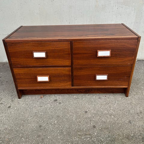 Snygg dansk retro byrå i mahogny och handtag i stål med 2 lådor från 1960-tal i fint bruksskick se bilder.