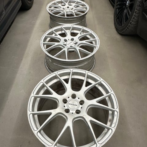 5x114,3 9×18 10x18 Et runt 35-40. Däck 215/40R18 245/35R18 med Stretch, märke Star performer lagliga men inga höjdardäck. Skrap och märken förekommer. Pris 10000kr