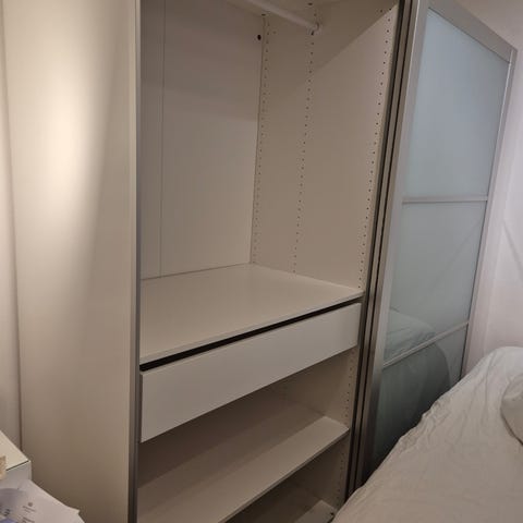 Två stycken komplement utdragbar klädstång till Ikeas Pax-garderob. Är till garderoben som är 35 cm djup. Denna typ av utdragbar klädstång säljs inte längre.