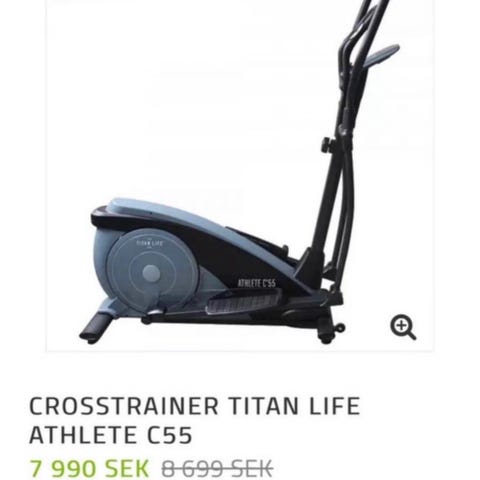 Har ett nytt drivkraftssystemet ""Drive force system"" som ger en fantastisk känsla av 11 kg fast själva svänghjulet endast väger 6 kg. På så sätt får du en smidigare crosstrainer som är enklare att ställa undan utan att tulla känslan när du tränar. TITAN LIFE C65 har hela 40 cm i steglängd och totalt 21 program och en tydlig display som visar Tid, distans, puls, kalorier, hastighet, motstånd, varv/minut, watt. Crosstrainern har även handpulssensorer som du enkelt kan hålla koll på din puls under träning. Max användarevikt 130 kg. "