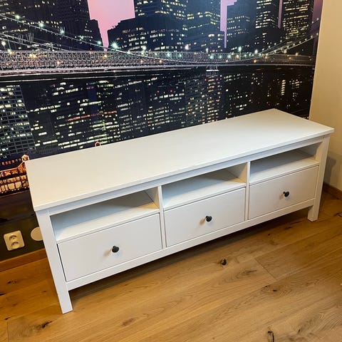 Har en vit TV-bänk som är 120x40cm