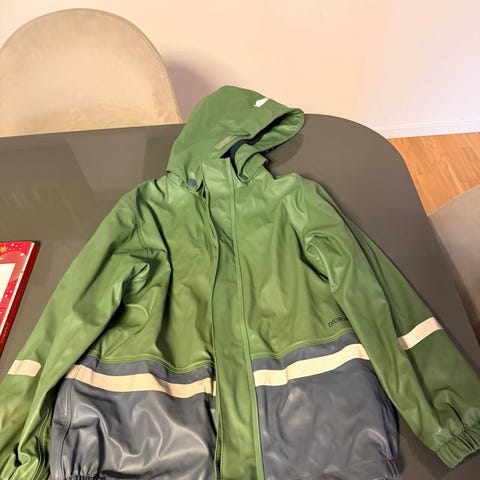 Didriksons fodrat regnställ med regnbyxor och regnjacka i storlek 130.