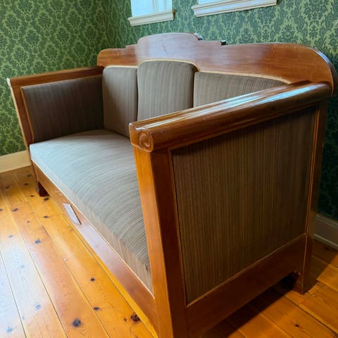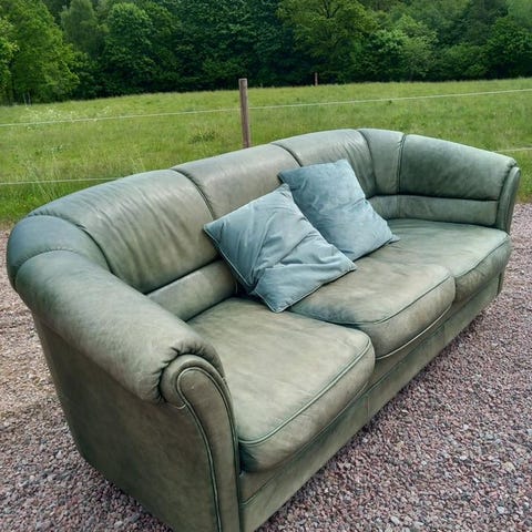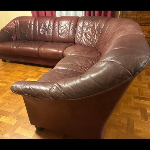 Brun skinnsoffa och vit (ikea) soffbord bortskänkes!