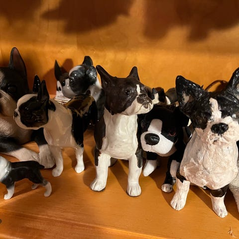 Mopsar fin samling med olika hundfigurer i olika storlekar och färger. Tillverkade i mjukt material, lämpliga som samlarobjekt eller dekoration.