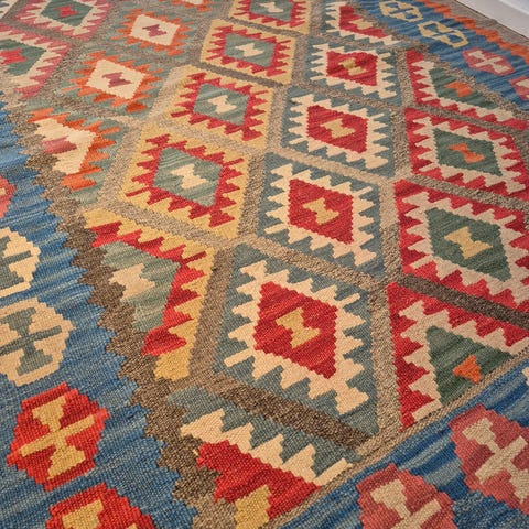&Tradition Handvävd Persisk Kelim matta med mönster i flera färger. Mattan är tillverkad av textilmaterial och har en traditionell design.