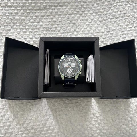 En unik klockhållare mycket omtyckt till Omega och swatch klockor då speedmaster var första klockan på månen. Även funktionell till smartwatchen då insjunkning för laddare finns, Säljer av unika tillbehör för Omega x swatch kollektionen då jag avyttrar mitt samlande. Obs att klocka på bild ej ingår :D