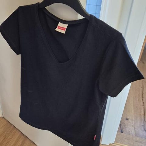 Svarta knästrumor. Bör passa ca 36 – 38. Lite lös resår högst upp på den ena, för övrigt fint skick 20:-