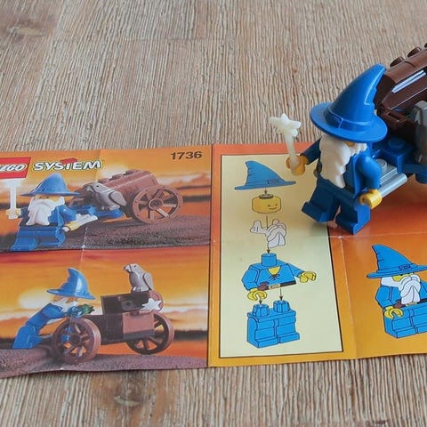 LEGO Kingdoms lego set som innehåller en riddare på häst, en borg med öppningsbara portar och tillbehör.