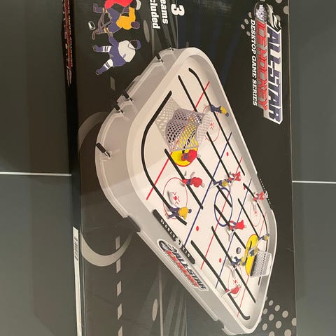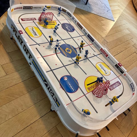 Hej säljer ett NHL hockeyspel med 12 gubbar totalt som tillhör spelet. Kartong ingår i köpet.