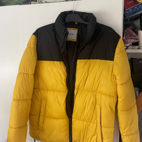 Jack & Jones vinterjacka i blå färg, storlek L. Tillverkad i nylonmaterial och polyester. Designad för att ge skydd mot kyla och vind under vintermånaderna.