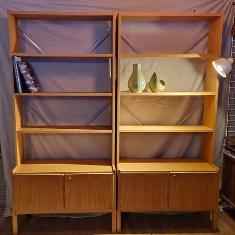Retro bokhylla i valnöt från 1960/1970-tal i fint skick se bilder. Hyllan är delningsbar i 2 delar.