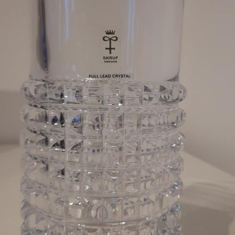 Vintage Bengt Edenfalk Skruf Sverige kristallglasvas. Signerad. Märkt. Vacker 50-70 talsmodern stil. Svensk designkonstglas. Med signatur, med etiketten: ROYAL CROWN OF SWEDEN FULL LEAD CRYSTAL
