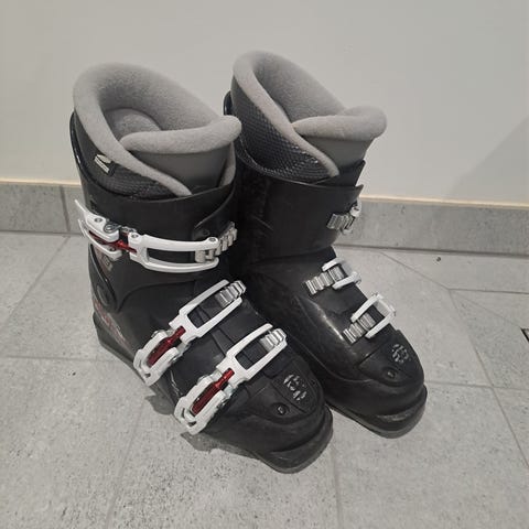Tecnica T3 skidpjäxor i svart färg, storlek 19,5. Pjäxorna är avsedda för skidåkning och har en slitstark konstruktion. Innersulan är avtagbar och se bild för mått. Pjäxorna har justerbara spännen för att anpassa passformen.