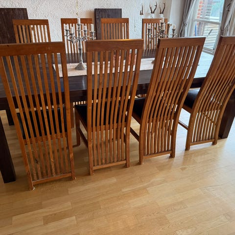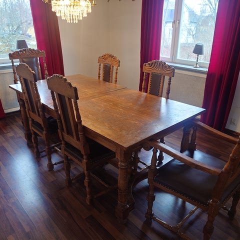 Fin Mat bord till 6-8 personer och 6 stolar säljs på grund av flytt.