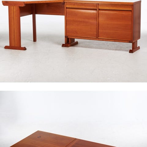 Den hörnskrivbord i furu är en vanlig möbeltyp som ofta säljs av återförsäljare av massiva trämöbler. Liknande skrivbord är ofta tillverkade av massiv furu och har en lackad eller vaxad yta.
