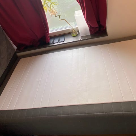 En IKEA säng SKOTTERRUD 120 cm x 200 cm i bra skick säljes på grund av flytt. Hämtas i Valla/T1.