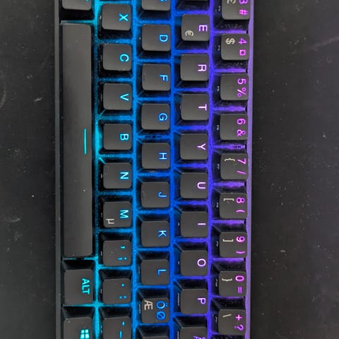 Enda att nämna är att Escape-knappen saknas, så den är ersatt med en vit keycap (fungerar perfekt).