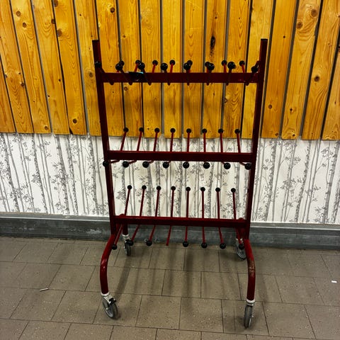 Stabil konstruktion som monteras mot vägg och tar lite plats.