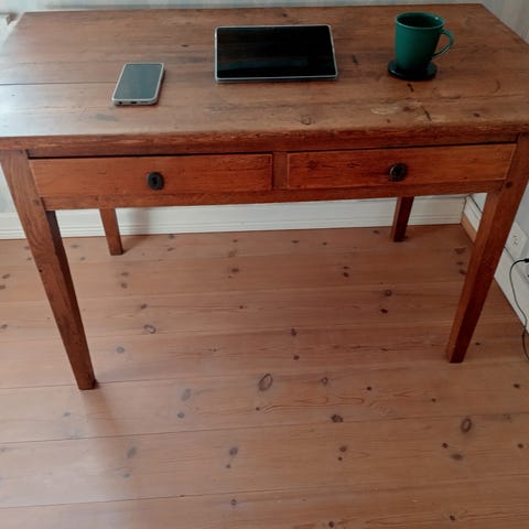 Antikt avlutat skrivbord 1800-tal. Lådorna är utförda med traditionella träfogningar och skrivbordet har en robust konstruktion.