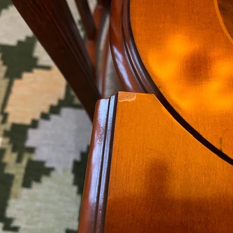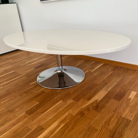Robust ovalt köksbord/ matsalsbord i valnöt på stabil cromad fot