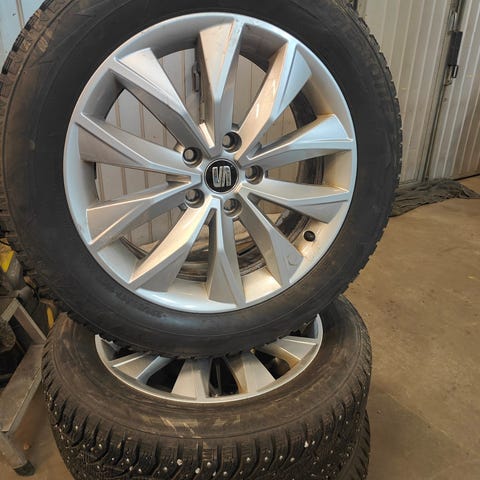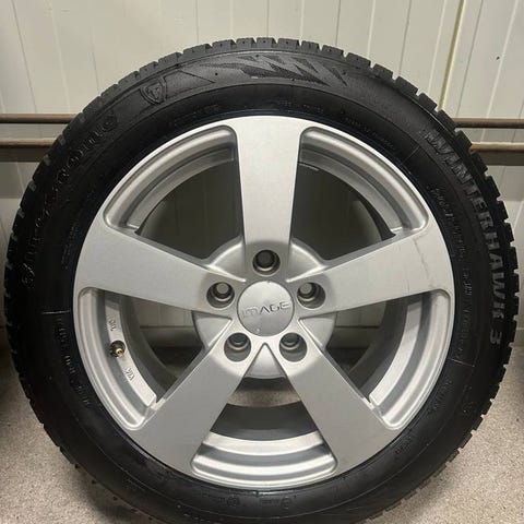 Däcken är fullt körbara men inte nya, vilket är reflekterat i priset. Perfekt för dig som vill ha snygga originalfälgar eller behöver ett komplett hjulset.