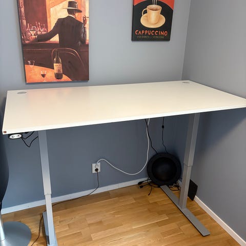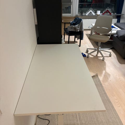 Height and adjustable desk, Length: 160cm Width/depth: 80cm The table has some flaws but otherwise works perfectly. Pick up in Copenhagen (Sydhavn)