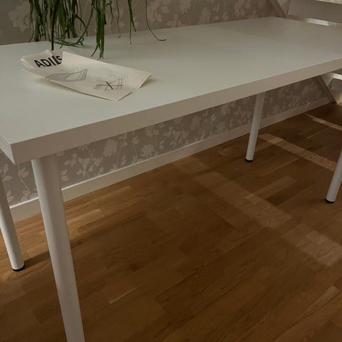 Säljer nu mitt skrivbord då jag beställt nytt, går att höja och sänka men hjälp av en insexnyckel! mått 140x60cm skivans tjocklek 16mm.