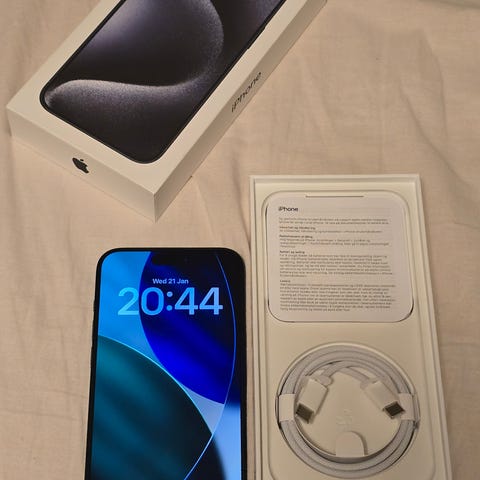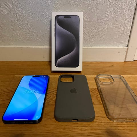 Säljer min iPhone 15 Pro Max (Black Titanium, 256 GB) då jag har köpt ny telefon.