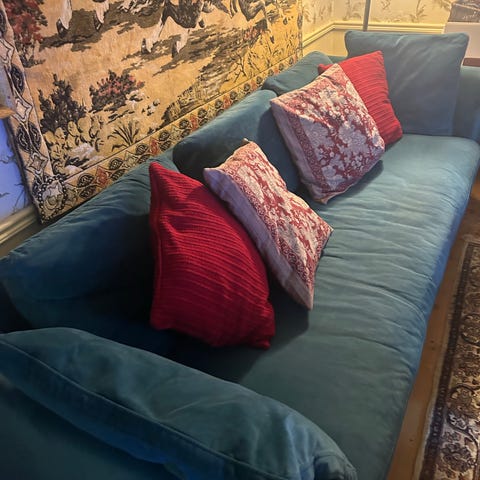 Lyxig designsoffa i ljus mocka.