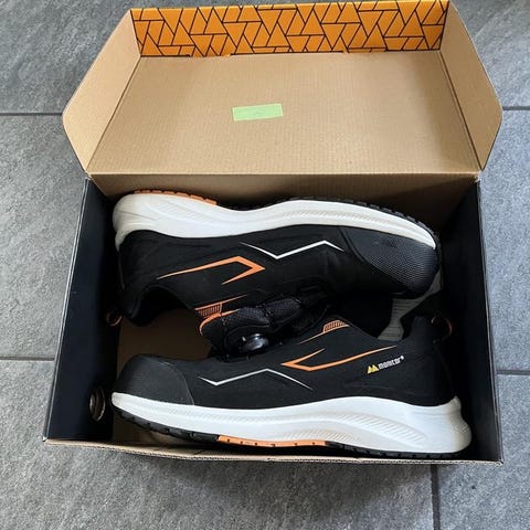 ELTUFF® Turbocharge Safety Trainers är en modern, lätt och flexibel stil av säkerhetstränare. Dessa säkerhetsskor drar nytta av en överdel i nubuckläder som har en vattenavvisande beläggning. Under denna överdel finns en icke-metallisk skyddande tåhätta, som hjälper till att se till att de förblir lätta. En vadderad krage och tunga, en komfortinläggssula och en stötdämpande mellansula ger exceptionell komfort för hela dagen. Under detta finns Kevlar® antipenetrerande mellansulor för skydd under fötterna, medan yttersulorna är antistatiska, ger ESD-elektriskt motstånd och är halkskyddade enligt SRC-standarder. Ett par moderna och funktionspackade säkerhetstränare av högsta kvalitet.