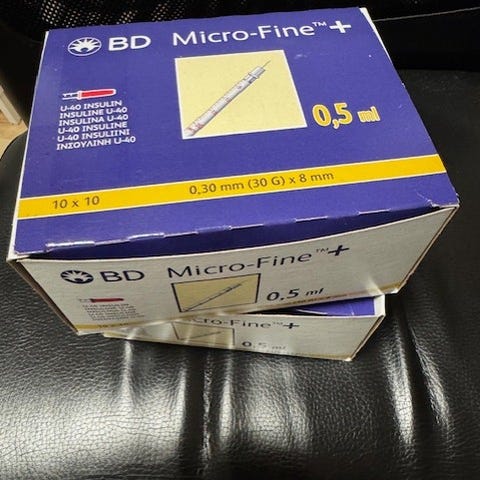 hel kartong med sprutor finns.