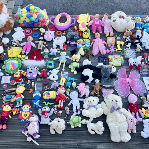 barnleksaker inklusive mjukisdjur och andra leksaker i olika former och material. Leksakerna är avsedda för barn och inkluderar bland annat gosedjur