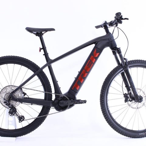 Trek Powerfly 5 är en kraftfull el-mountainbike för terrängcykling, pendling och all-around off-road-bruk. Den är utrustad med en Bosch-motor och integrerat batteri i ramen, samt en robust RockShox-gaffel med luftfjädring och en Shimano 12-växlad drivlina för optimal prestanda i både branta stigningar och snabb stigcykling. Med 29-tums hjul (för Large-storlek) får du utmärkt rull och grepp på olika underlag, vilket gör den perfekt för all slags terräng.