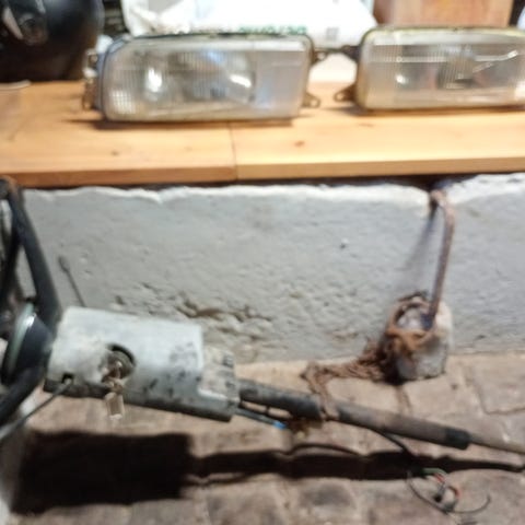 Inredning till Bmw 2000luxus ca årsmodell 69-70.rattstång komplett med ratt och tändninglås.grill.strålkastare, baklampor ,instrumentbräda.,fina framstolar, baksätet har en skada uppe på ryggen.skickas ej.hämtas på plats.allt eller inget.