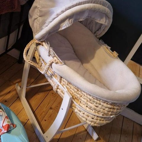 Fin vagga att använda den första tiden med bebis. Korgen är lite skavd i färgen på sina ställen men ger bara ytterligare patina.